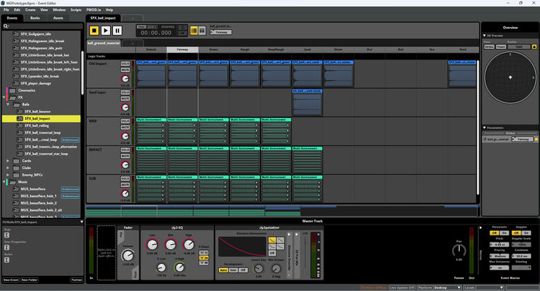 Additionally, I was responsible for maintaining the fmod project for the game. This honestly was my first time using fmod as I have previously worked in Wwise for the majority of my career. I was familiar enough to quickly get myself acquainted with standing up the project. It's not uncommon to be dropped into the middle of a project and needing to quickly asses the current state of the game audio or to quickly understand how the backend of the game project functions - in order to navigate to the proper locations to make gameplay calls for sounds.