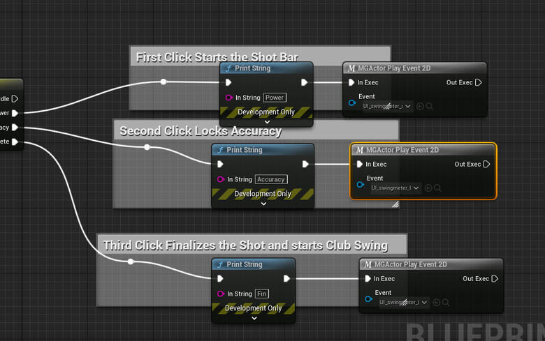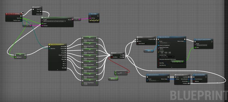 There were a lot of elements that needed to be taken into account when adding sound effects to the game. The ball, for example, needed both a rolling and a bounce sound in addition to multiple surface material types. Here's a video that explains how I set up the needed gameplay calls within Unreal 5 Blueprints.